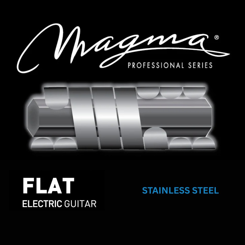 Magma Flat Electric Guitar Strings are crafted from stainless steel using a round-wound construction that is precision-flattened for a smooth feel. This unique process delivers greater sustain, volume, and brilliance compared to traditional flatwound strings, while the polished surface provides a soft touch that reduces finger noise and string squeak. Built for durability, Magma Flat strings also offer longer life than conventional strings.